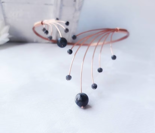 This necklace has been designed and handmade by me with 1mm copper wire and 4 and 8mm larvikite beads, also known as gray labradorite.