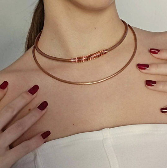 Copper necklace for women, brass or german silver wire collar necklace for her, statement necklace gift for her