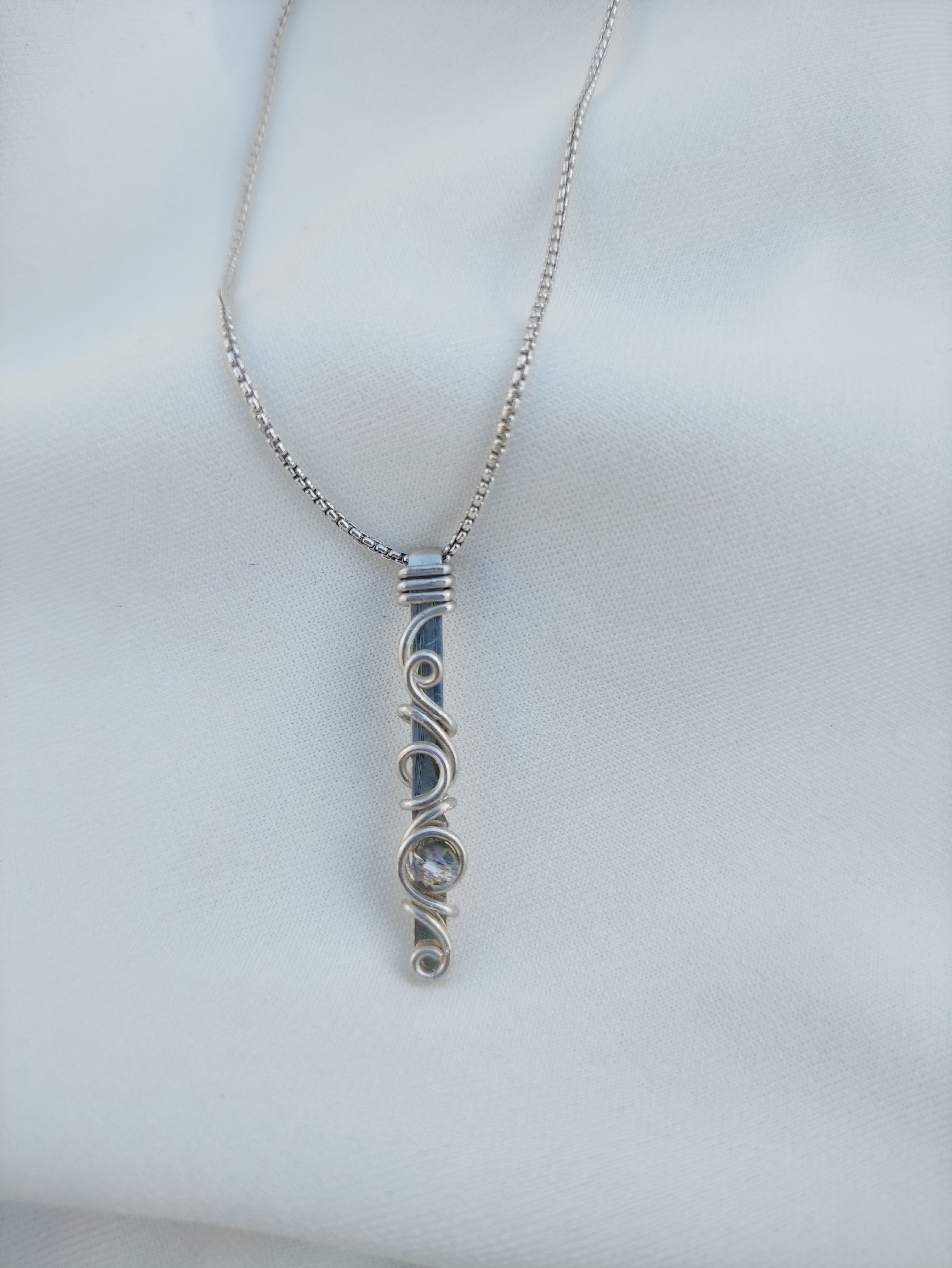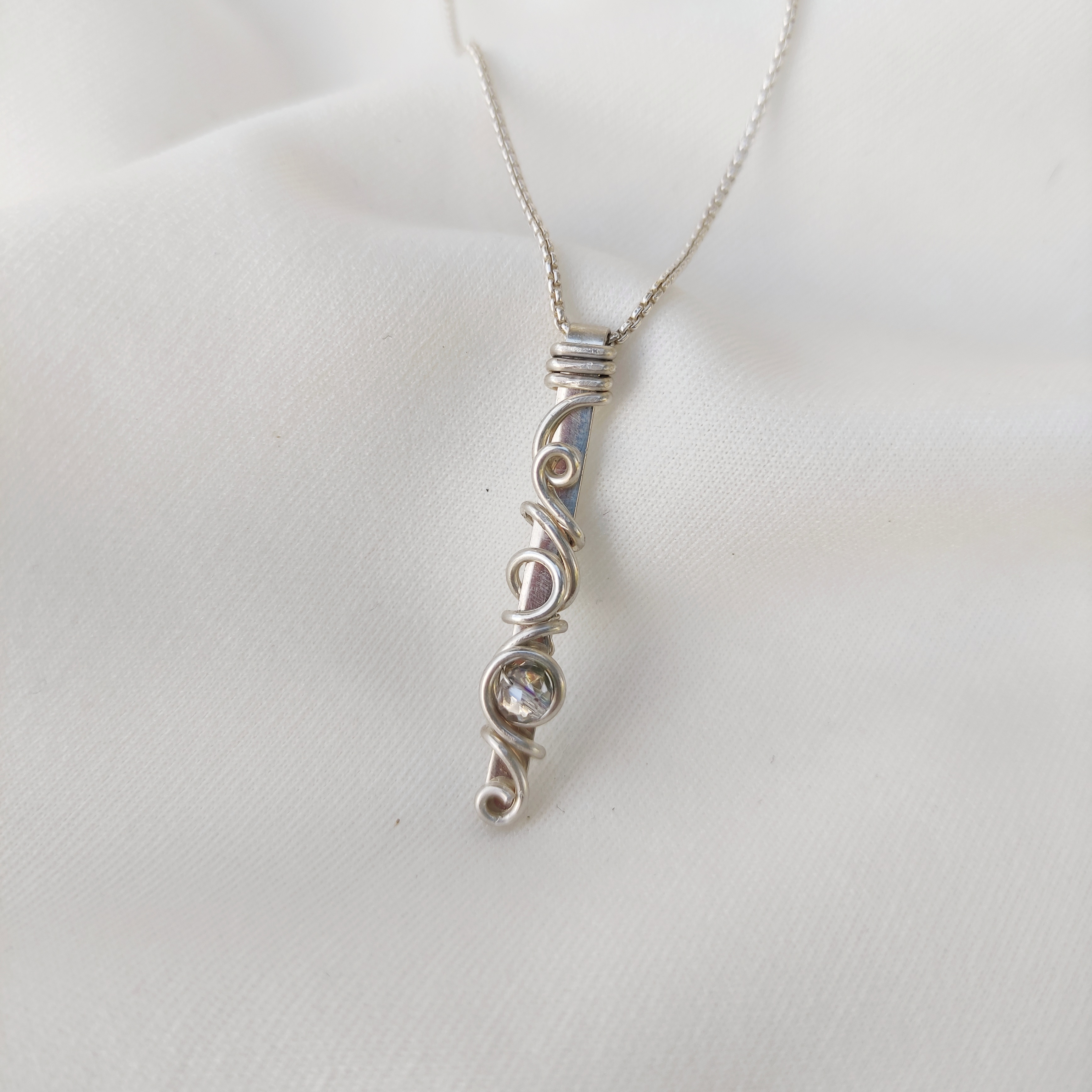 950 silver bar pendant necklace with swaroski crystal, delicate bar pendant for womenminimalist ring pendant for her, wedding ring pendant