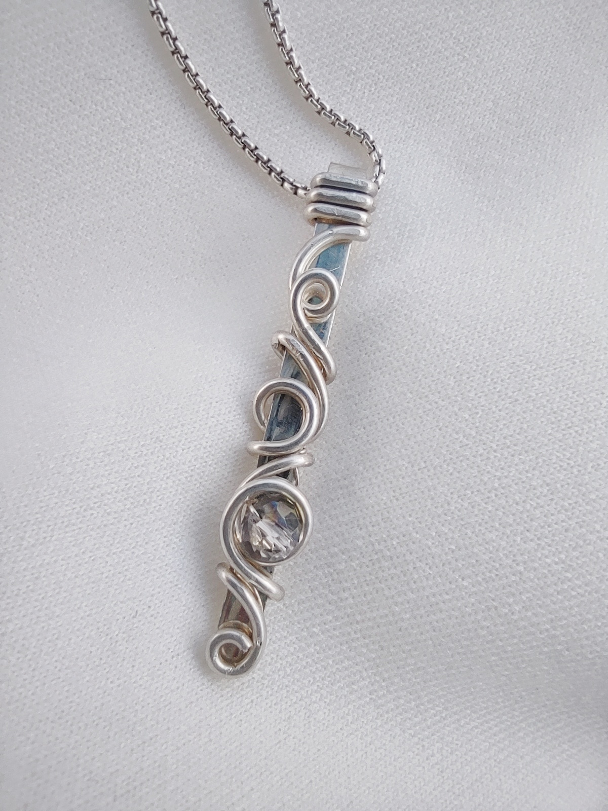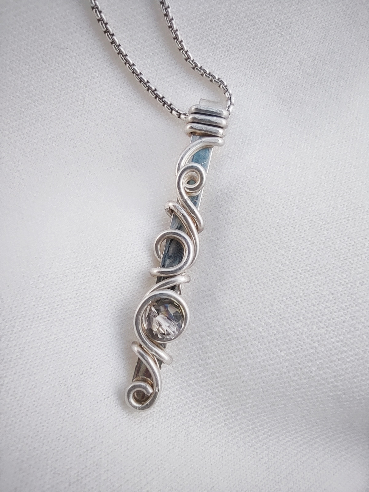 It has been embellished with 950 silver filigree and a small faceted swarovki crystal bead.