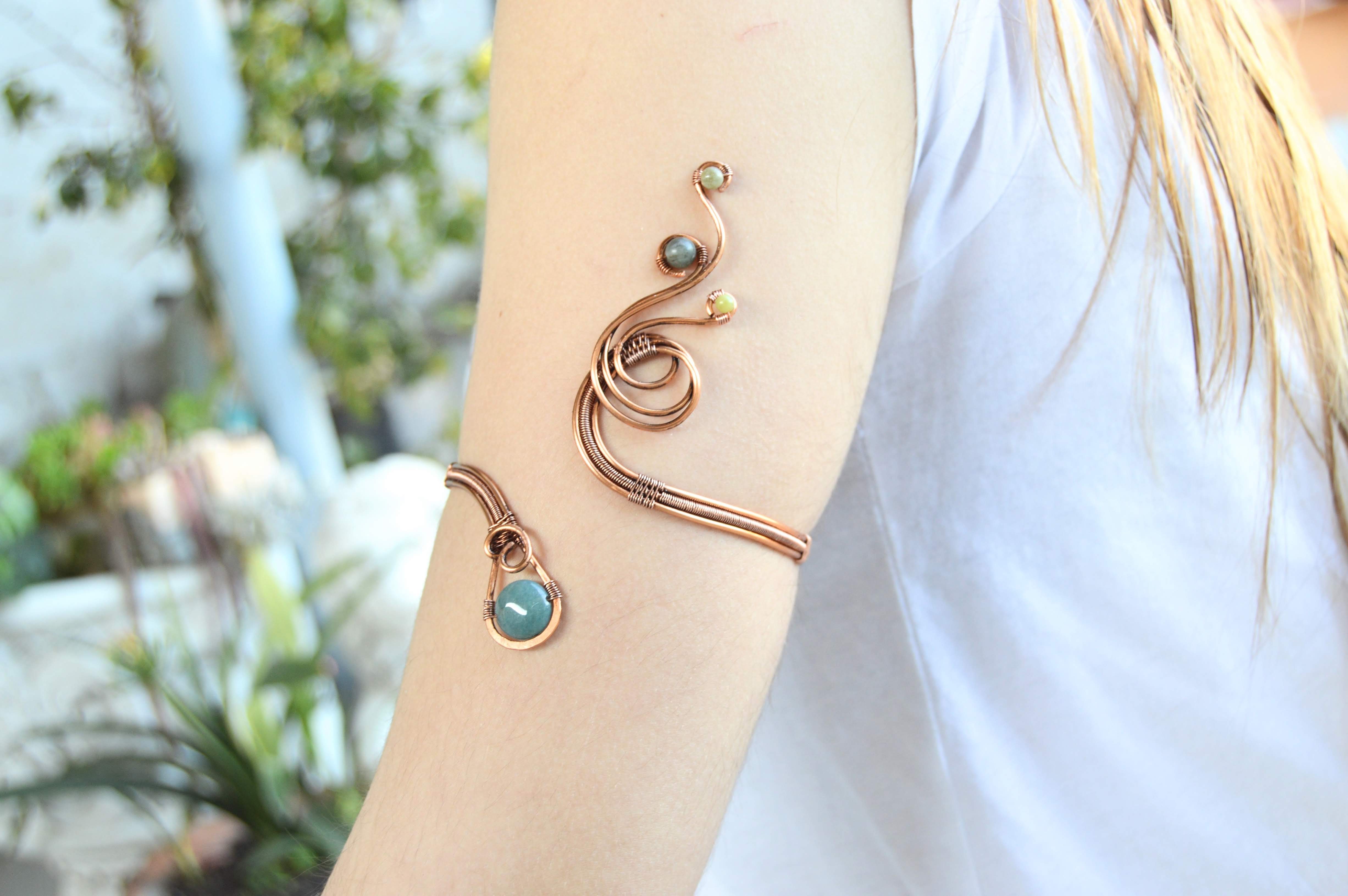 Upper Arm Cuff Bracelet With Green Agate - Beach Open Cuff Bracelet, Gemstone Bicep Cuff Bangle For Girls,