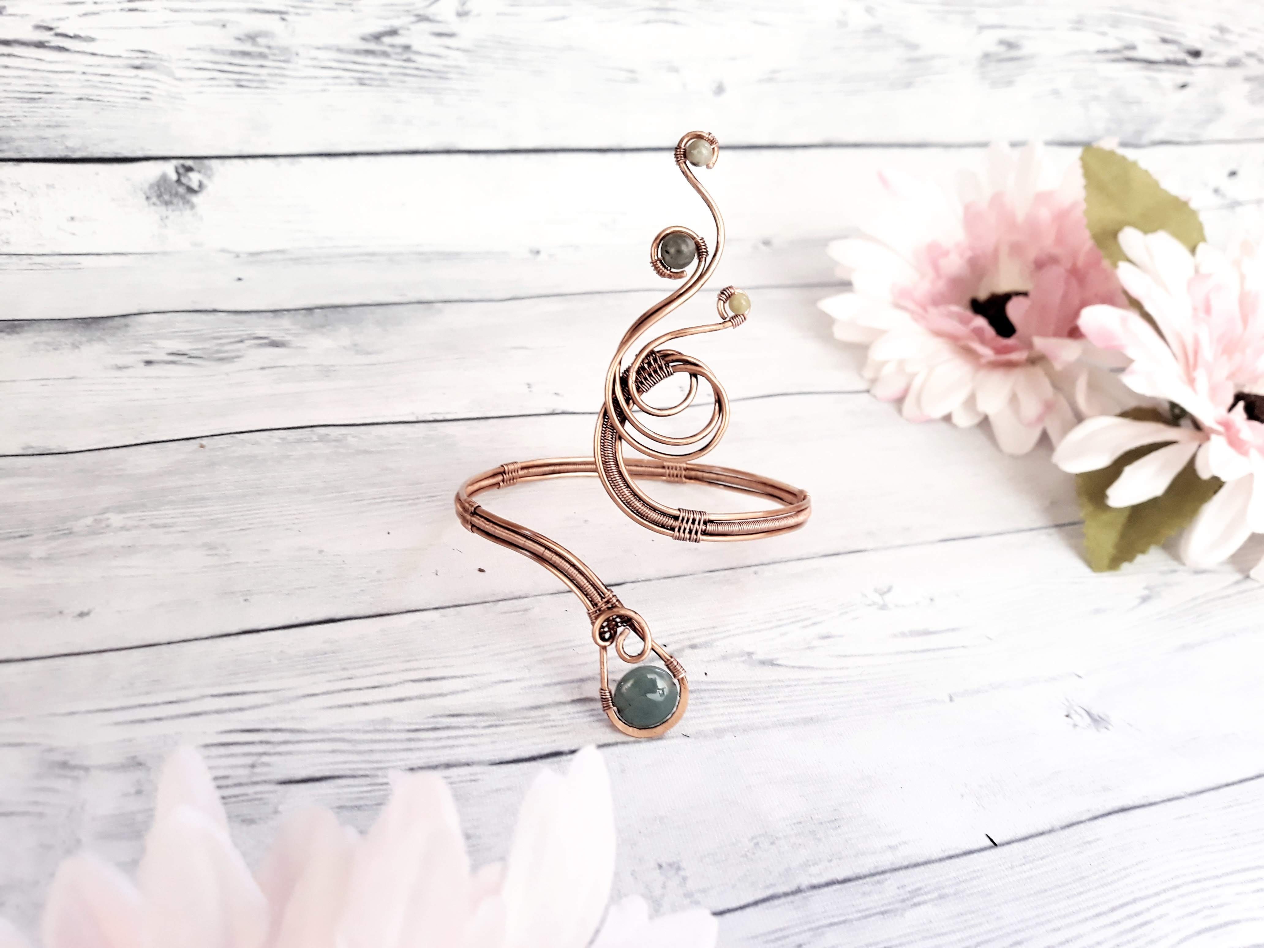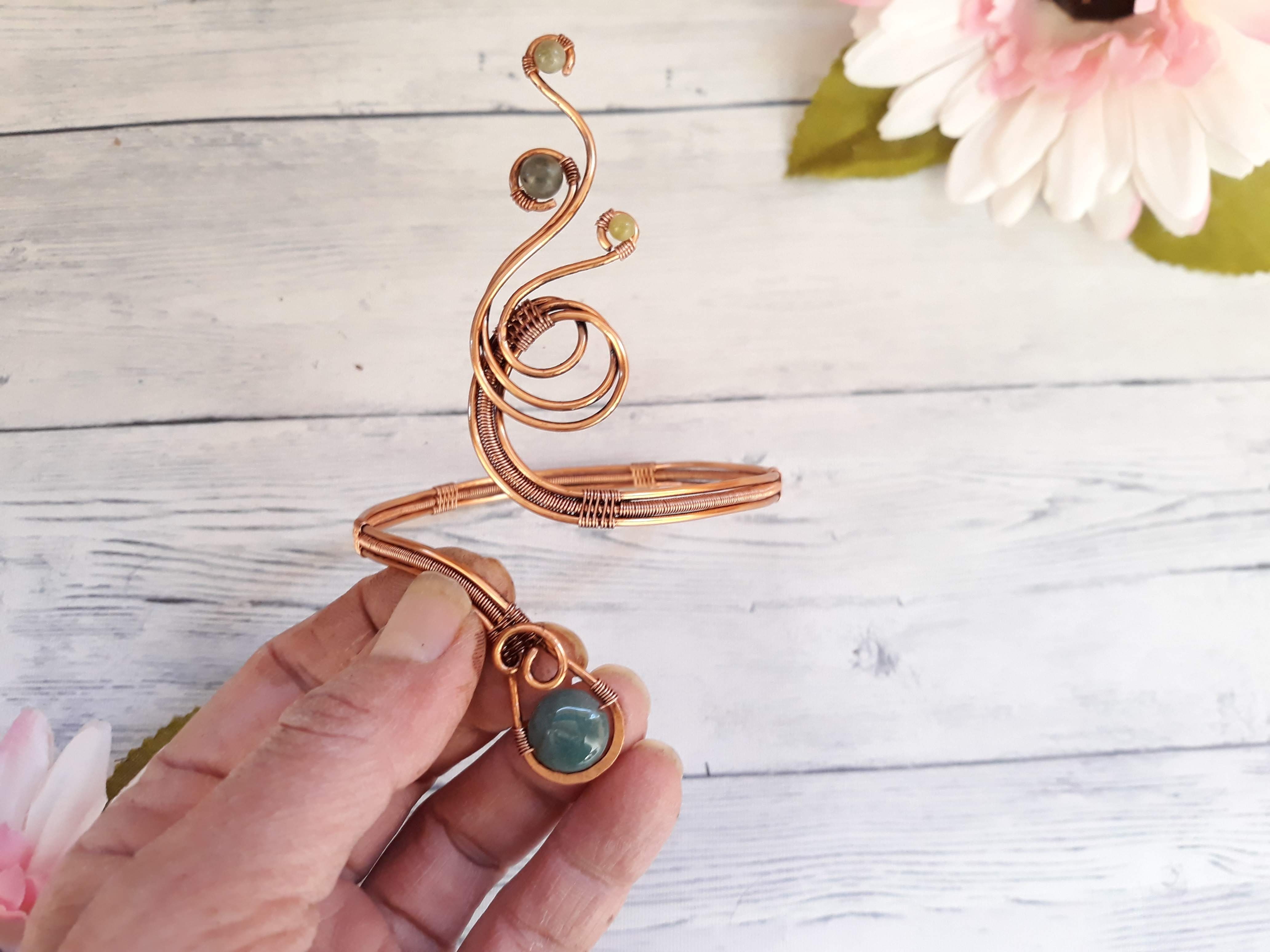 This bracelet has been designed and handmade by me. I used 1.5 mm copper wire and also 0.4 mm wire.