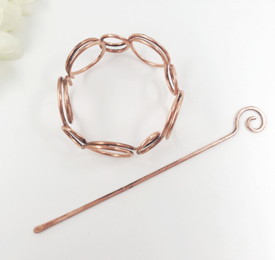 The bun holder in the photos is made with copper wire. If you want this hair jewelry in brass or german silver, you can indicate it in a message.