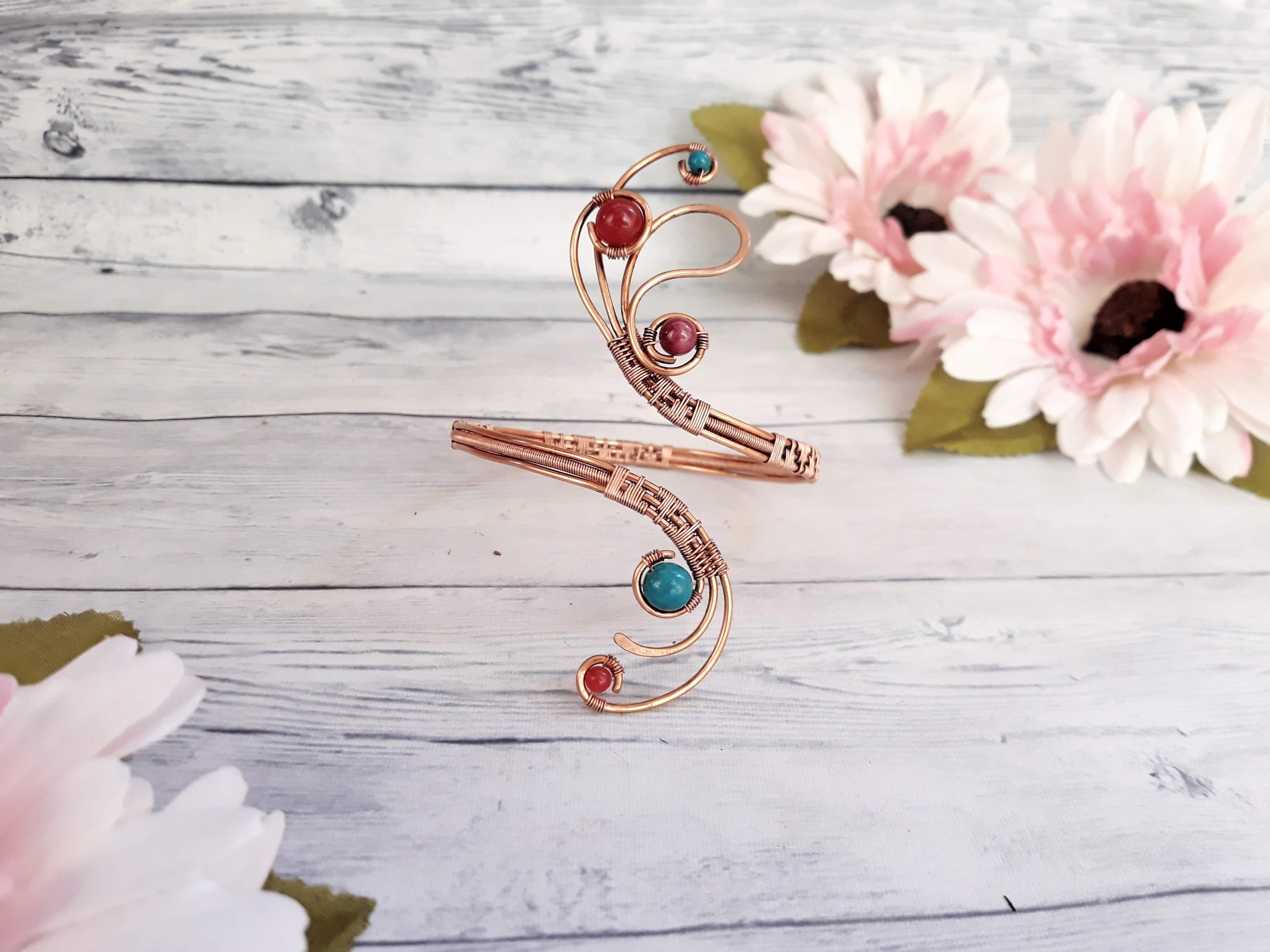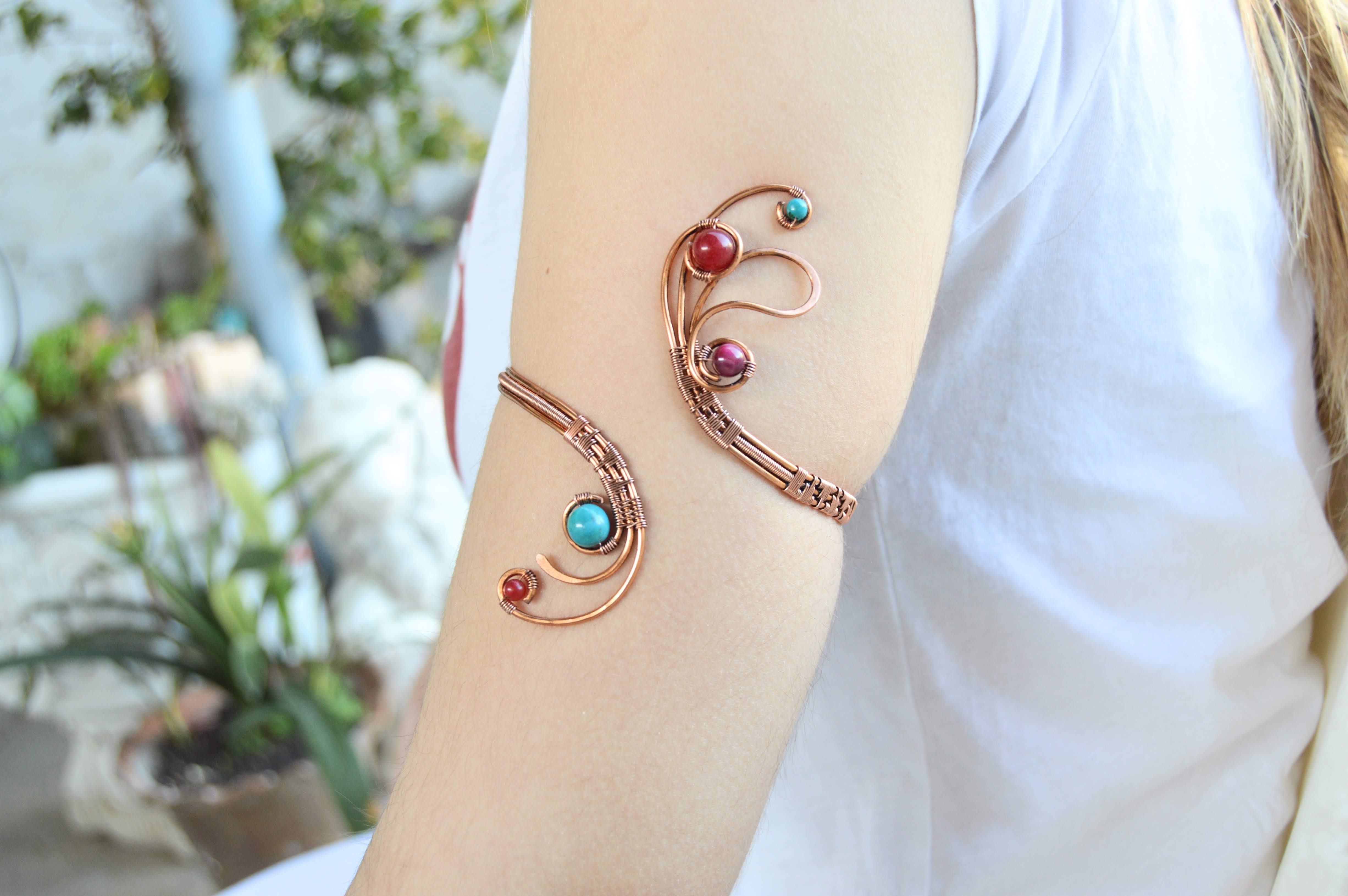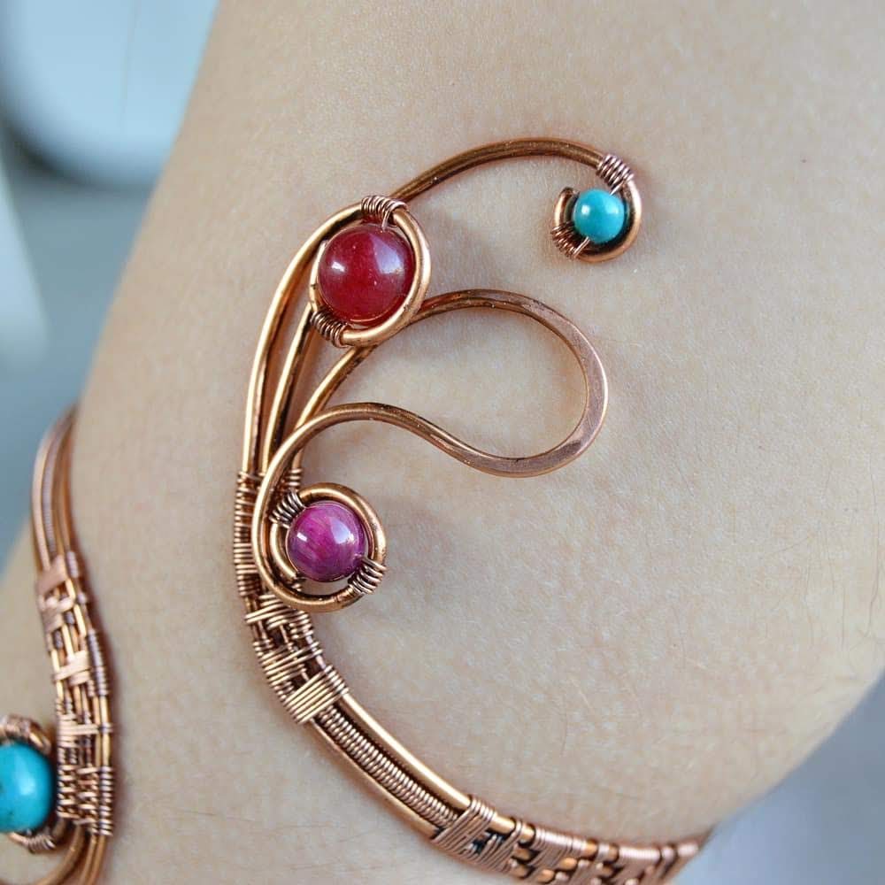 The arm bracelet has been designed and handmade by me with 1.5mm copper wire that I have woven with 0.4mm copper brim.