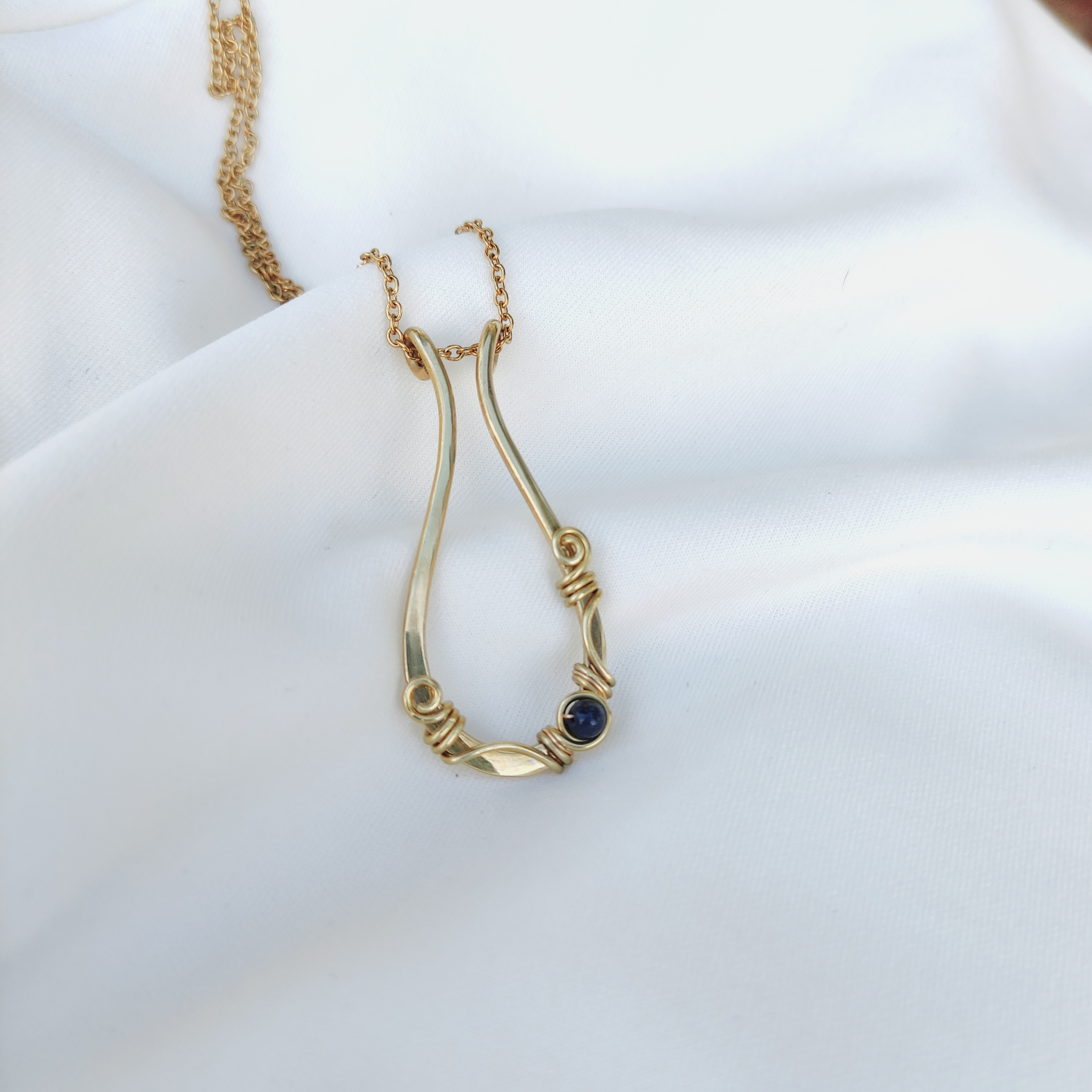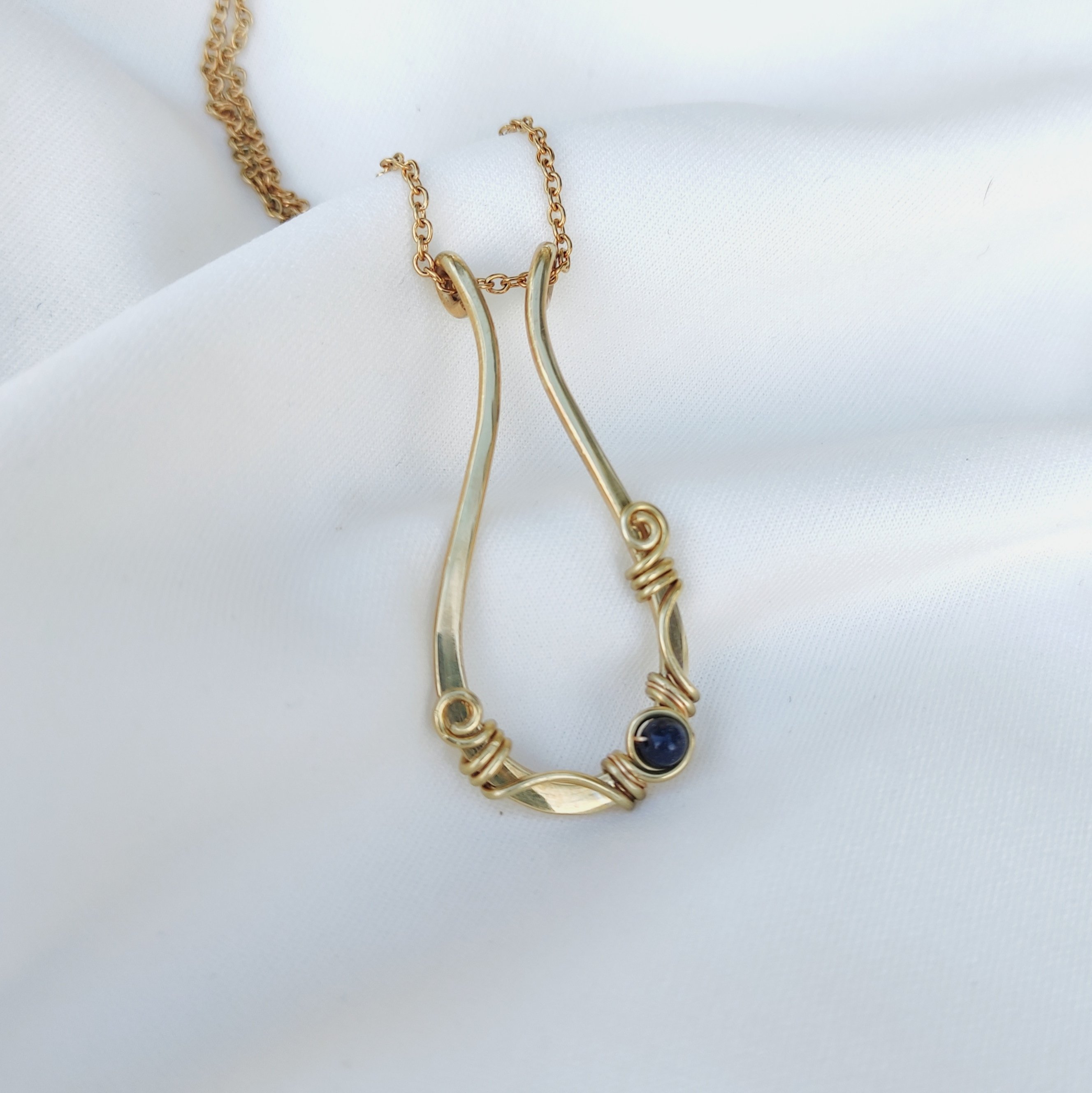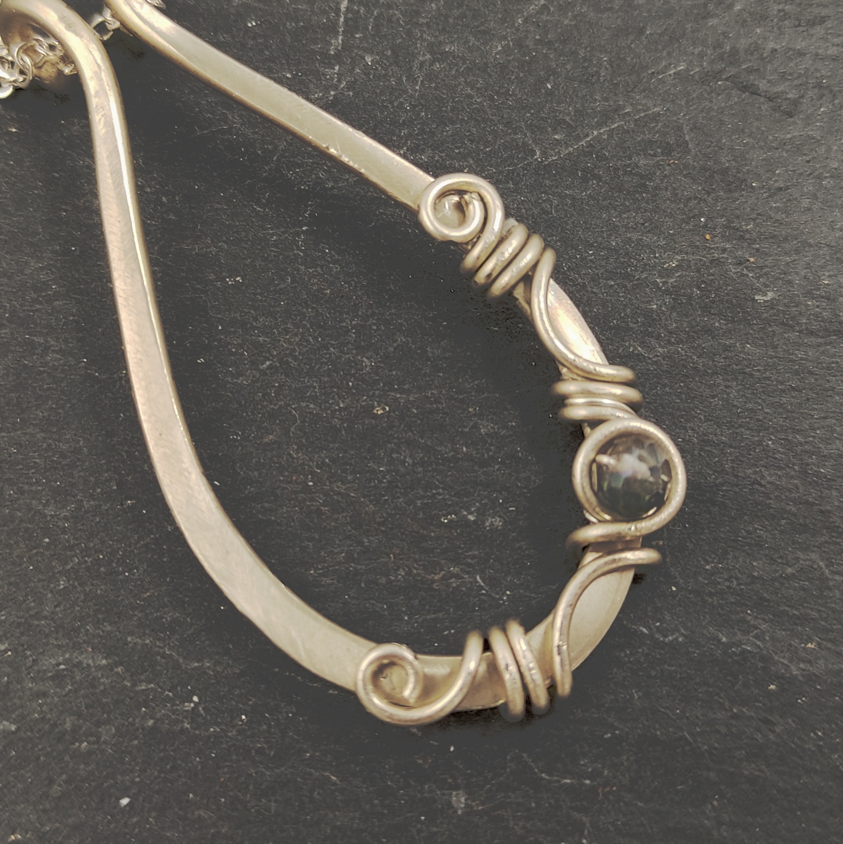 The wedding ring pendant has been designed and handmade by me with brass wire and 1 faceted crystal bead.