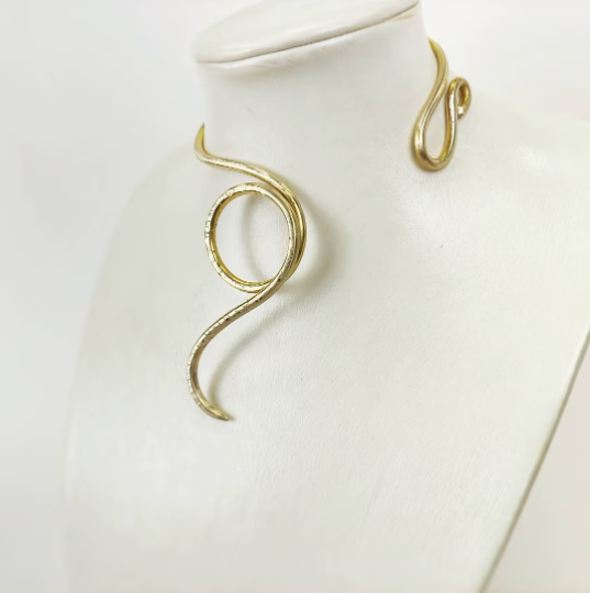 Snake choker with asymmetrical shape designed and handmade by me with 3 mm wire and is inspired by a snake and the Egyptian necklace.