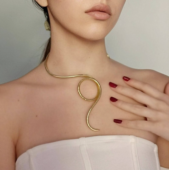 Snake collar Necklace for 7th Anniversary Gift Asymmetrical Choker Gold Open Necklace