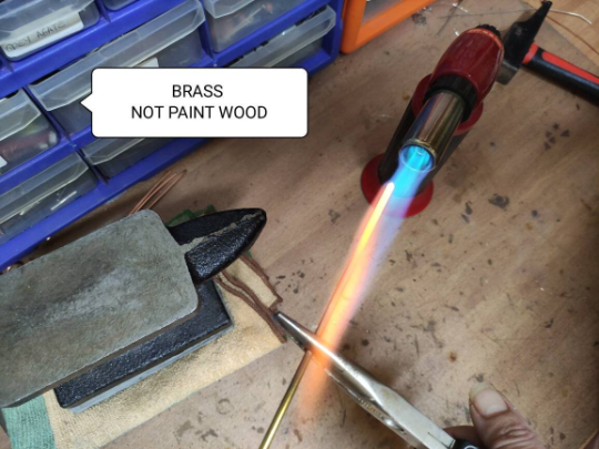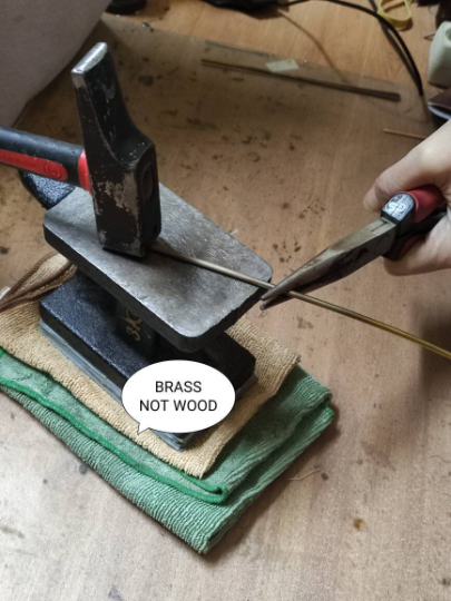 They have been made by me in my workshop with brass wire that I have hammered and polished to give it a flat shape at the top.