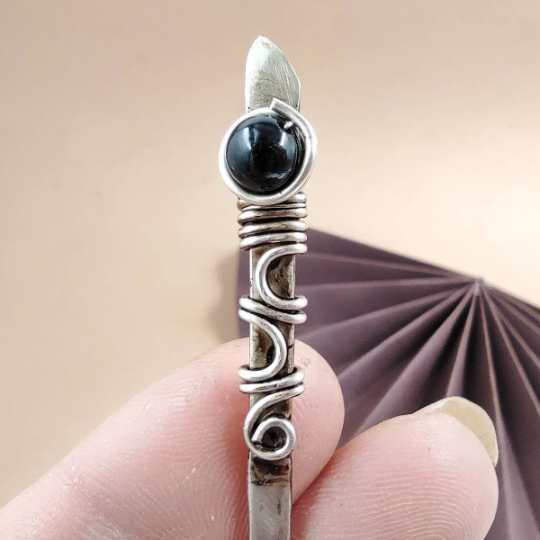 This original hair accessory has been designed and handmade by me with 3,25 Mm german silver wire that I have hammered, shaped and polished by hand.