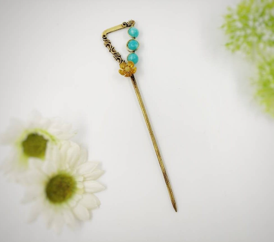 Beautiful Egyptian style hair stick designed and handmade with brass wire.