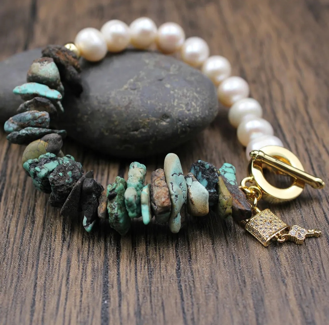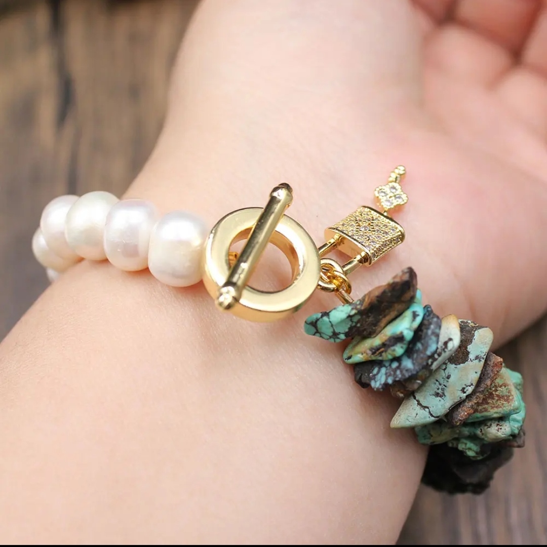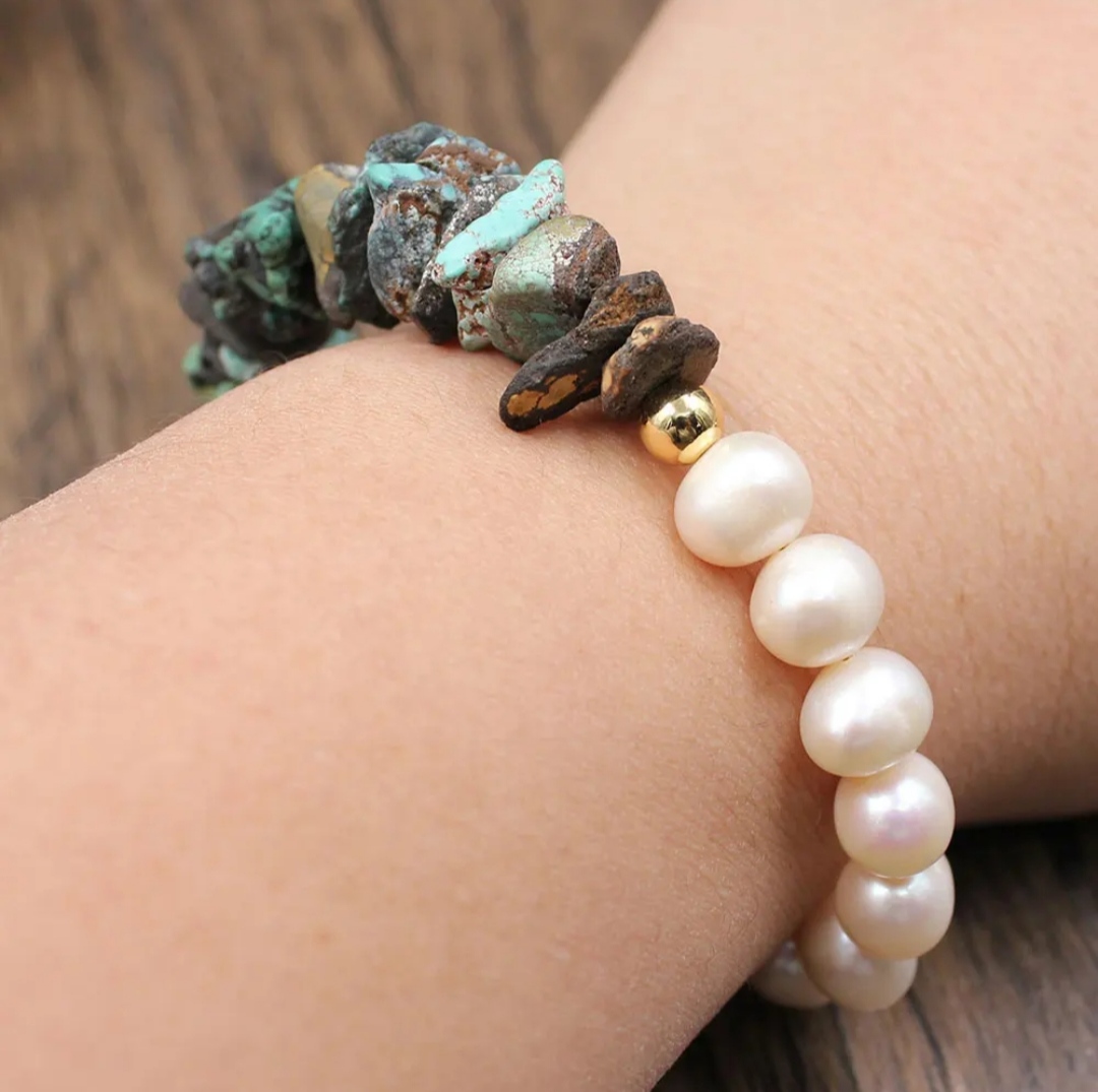 They have been made with wrapped copper wire and I have embellished them with Chinese jade beads of different sizes.